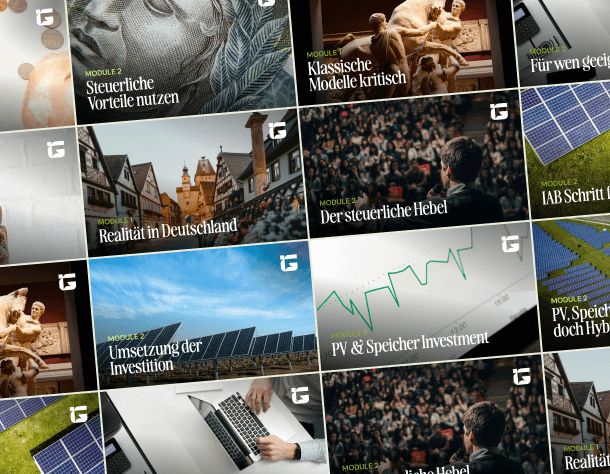 In unserem kostenfreien Videokurs zeigen wir dir Schritt für Schritt, wie du durch nachhaltige Investments deine Steuerlast legal reduzierst, und für planbare Renditen, mehr Liquidität und deinen Vermögensaufbau einsetzt.