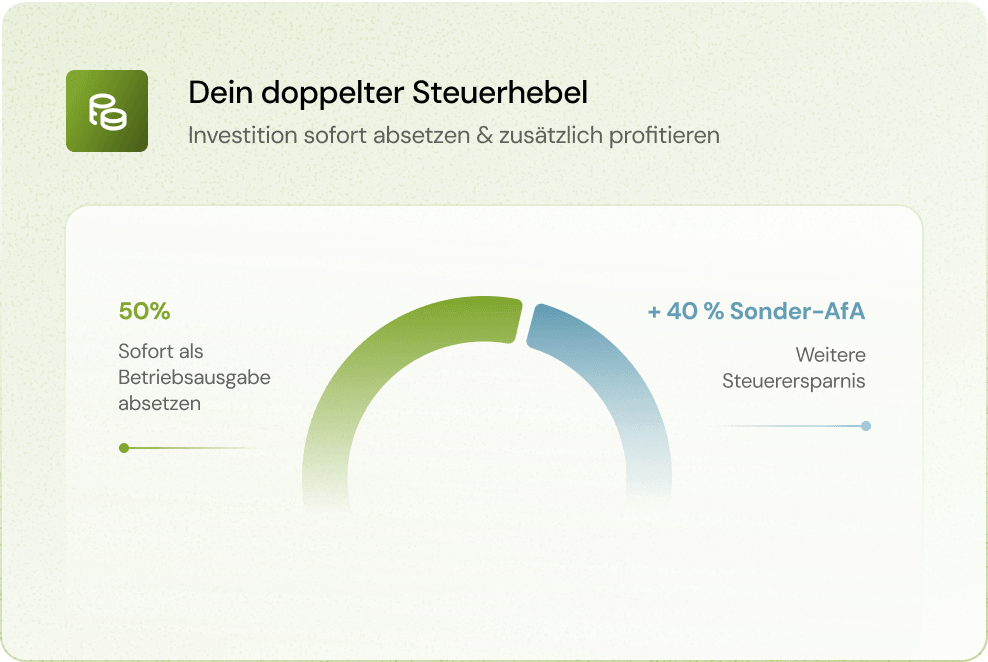 Im Exklusivwebinar zeigen wir dir, wie du die neue Marktlage nutzt, um Steuern in Rekordzeit zurückzuholen, Batteriespeicher clever als Rendite-Turbo einsetzt und dank des frischen Sonderabschreibungsgesetzes schon 2026 steuerfrei Kapital aufbaust - rechtssicher, bankenunabhängig und mit Qualitätstechnik.